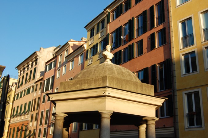 Gênes, qui forme un amphithéâtre presque parfait et dont la scène serait la mer, est une ville antique, qui était surnommée "la Superba" (la Superbe) mais aussi l'Orgueilleuse. Pétrarque la voit comme "une ville royale, adossée à une colline alpestre, superbe grâce à ses hommes et à ses murs. Dont le seul aspect, la désigne comme la reine des mers".